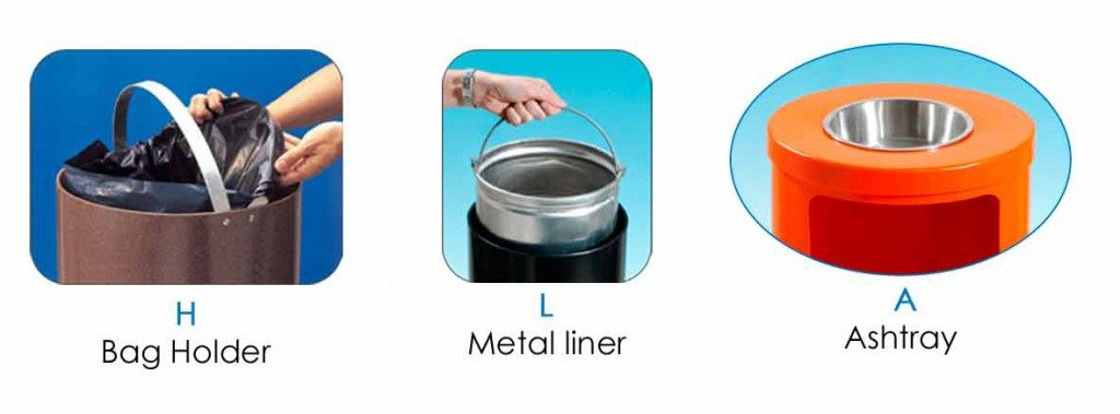 Each unit includes a durable bag liner. For added function, you may upgrade to a metal liner or include a top ashtray to suit specific environments.